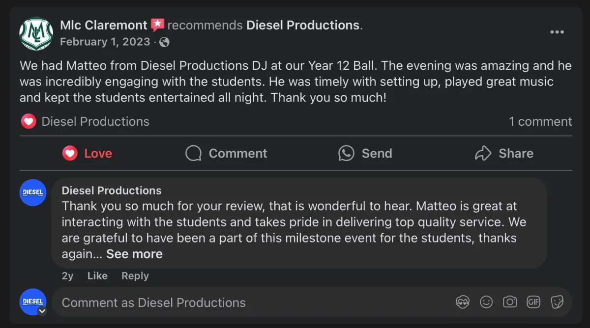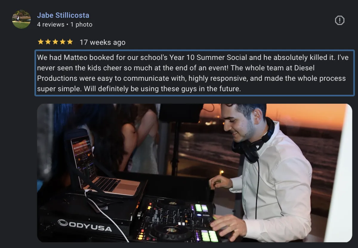 Diesel is an international DJ, event entertainer, and entrepreneur with over a decade of experience in the private events industry. He is the founder of Diesel Productions and Diesel Media and has performed at high-profile events across Australia, Miami, Vegas, and Europe.