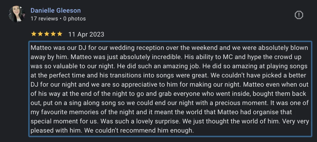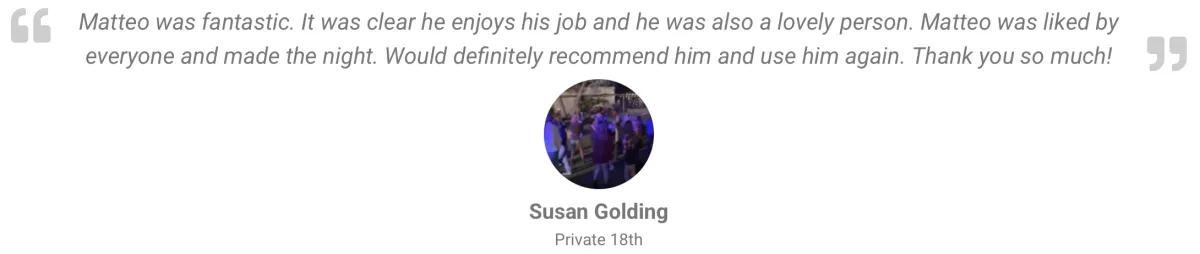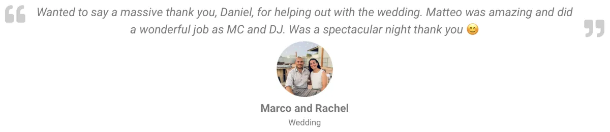 After attending our MC Masterclass, Matteo put his new skills to the test at a wedding—and the results spoke for themselves. His confidence, stage presence, and ability to control the room elevated the entire event, leaving the couple and guests raving. It wasn’t just another gig—it was a game-changer for his career.