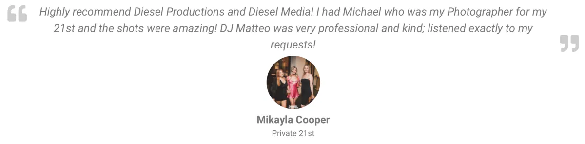 Diesel is an international DJ, event entertainer, and entrepreneur with over a decade of experience in the private events industry. He is the founder of Diesel Productions, Diesel Media, Diesel Entertainment Academy and has performed at high-profile events across Australia, Miami, Vegas, and Europe.